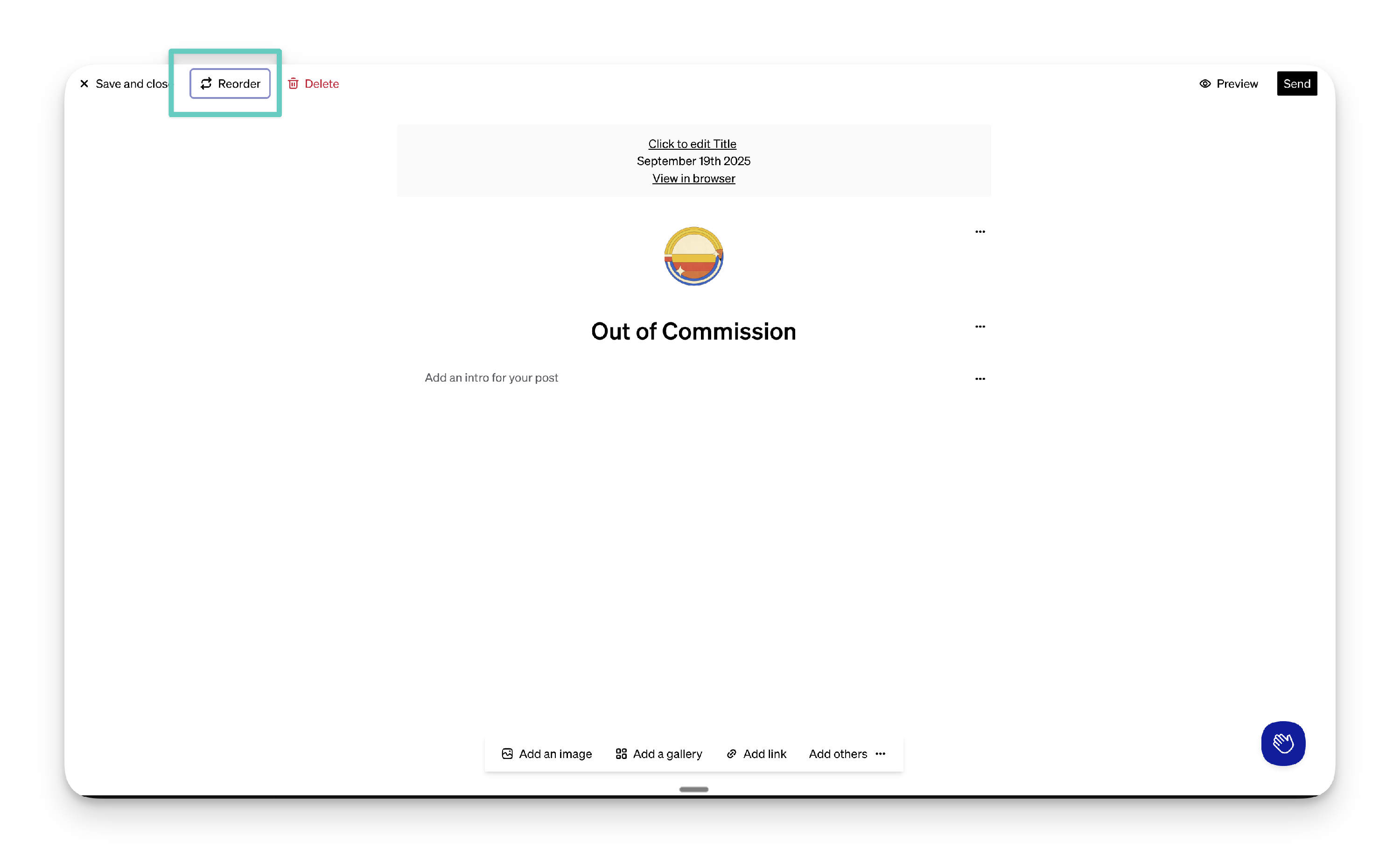 To re-order content in your post, click the re-order button here: